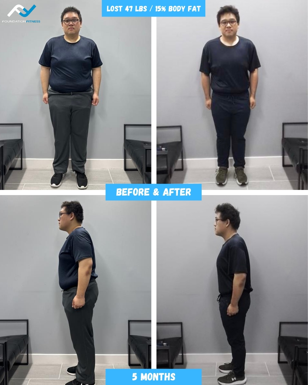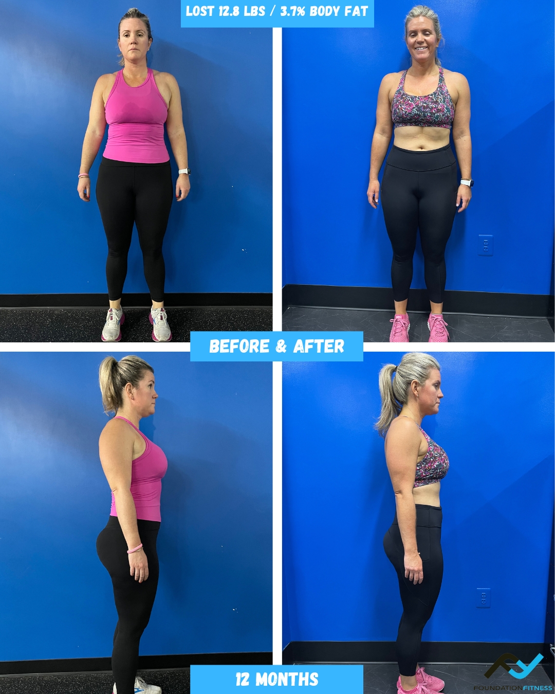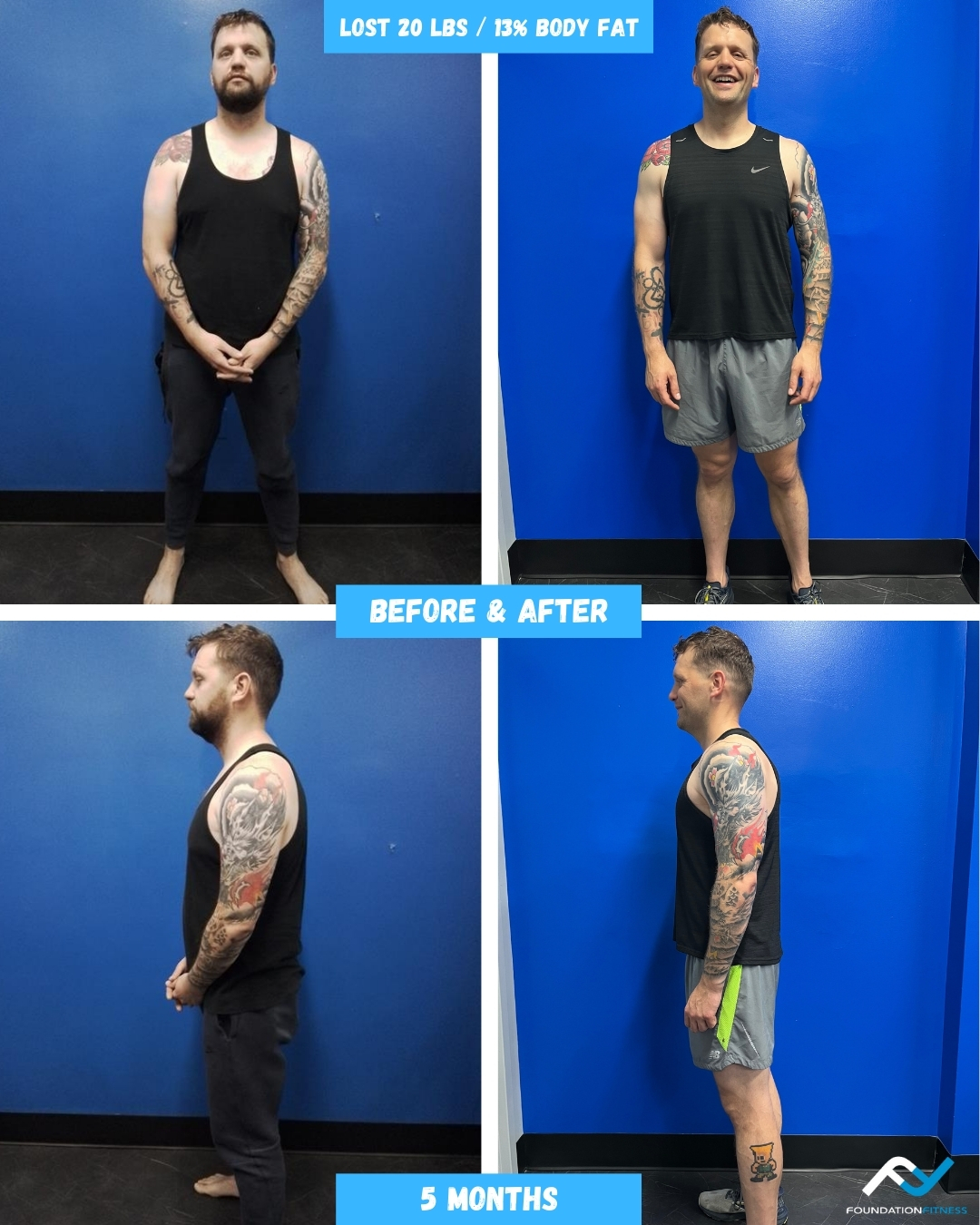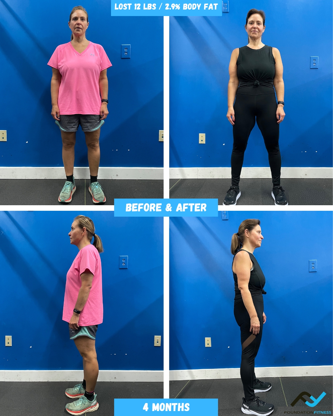 We believe in transparency, especially when it comes to progress tracking. We use the Foundation Fitness PT app to track workouts and strength progress in and out of the studio, weekly InBody scans to track body composition changes and MindBody Online (scheduling software) to track consistency.